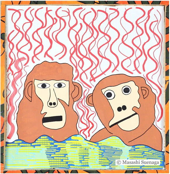 湯気が、出て来ている、2匹のおさるさん