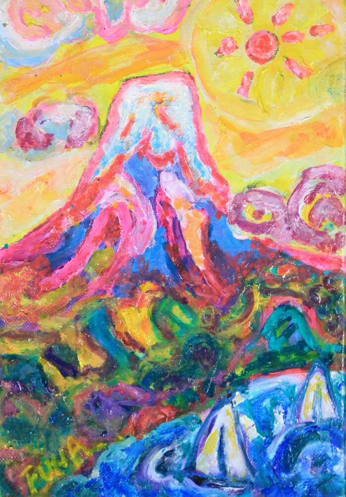 夏休みの絵の宿題で立山を題材に選び、