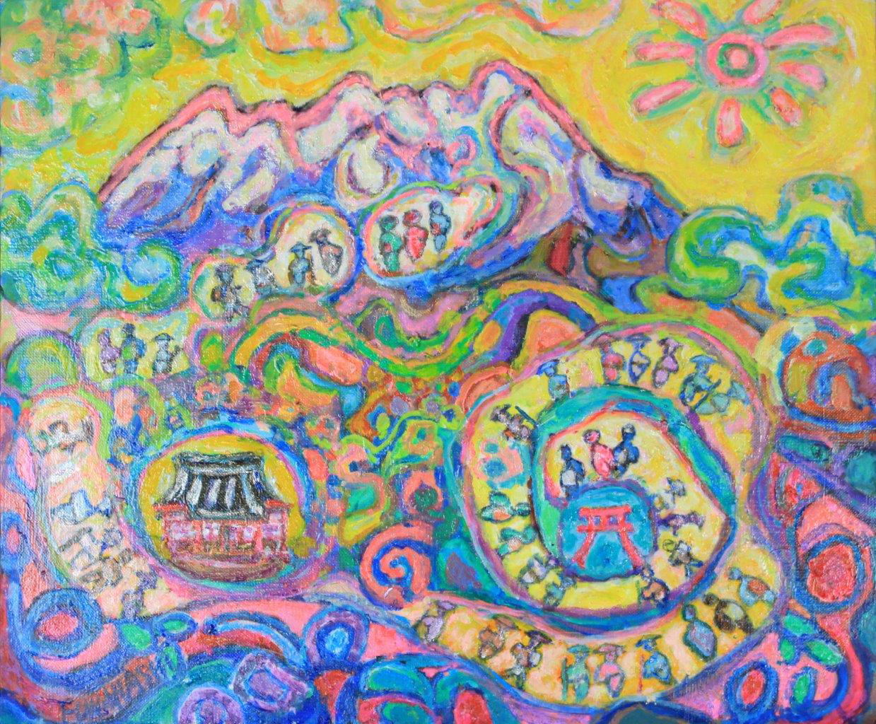 縦長のこの作品も立山曼荼羅の要素が散りばめられていて
