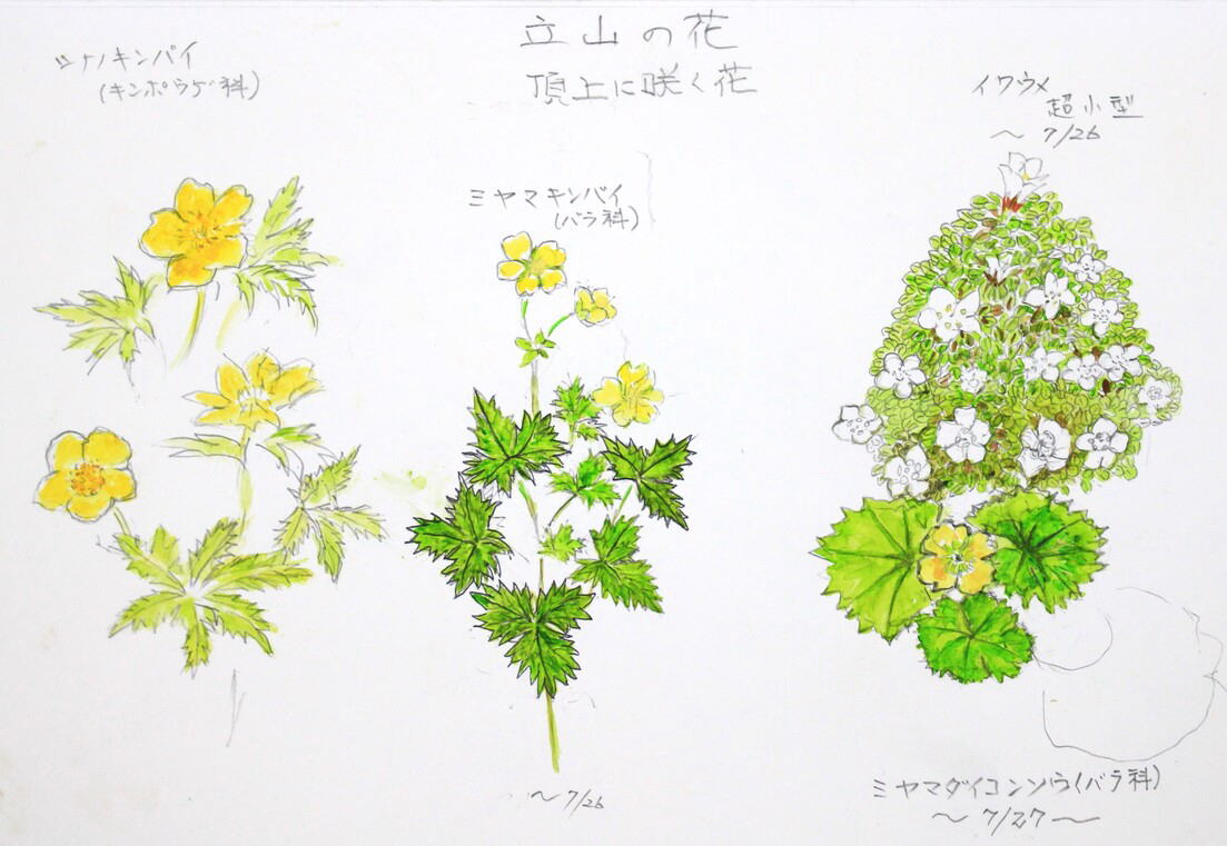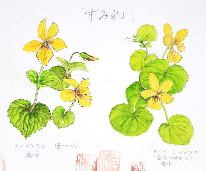 立山の「東一の越」のタカネスミレと「富士の折立沢」のキバナノコマノツメ